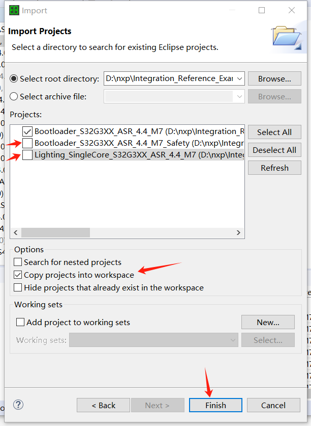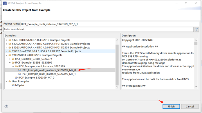 找到 IPCF_Example_multi_instance_S32G399_M7_0 工程並點擊 Finish。