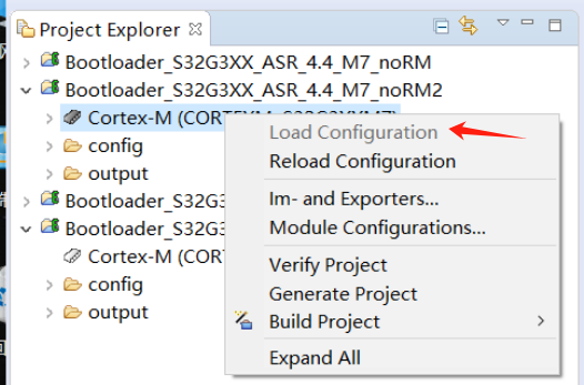右擊工程 Cortex-M -> 點擊 Load Configuration。