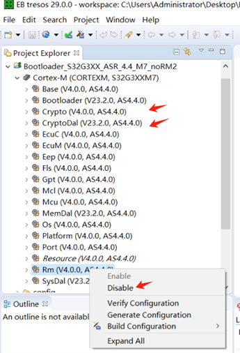 分別右擊 RM、Crypto 和CryptoDal,都 disabled 掉。