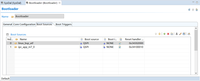 導航到Bootloader插件的配置。選擇“Boot Sources”,配置 linux_bsp_atf 和 ipc_app_m7_0 如下所示: