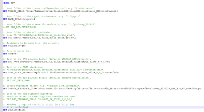 配置D:\nxp\Integration_Reference_Examples_S32G3_2023_02\code\framework\realtime\swc\bootloader\platforms\S32G3XX\build\configuration.bat 文件: