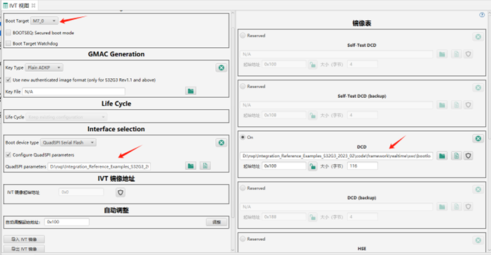 DCD 選擇 D:\nxp\Integration_Reference_Examples_S32G3_2023_02\code\framework\realtime\swc\bootloader\platforms\S32G3XX\res\flash\S32G3XX_DCD_InitSRAM.bin 文件。