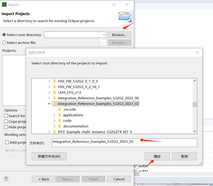 點擊 Browse… -> 找到 Integration_Reference_Examples_S32G3_2023_02 安裝目錄 -> 點擊確定。