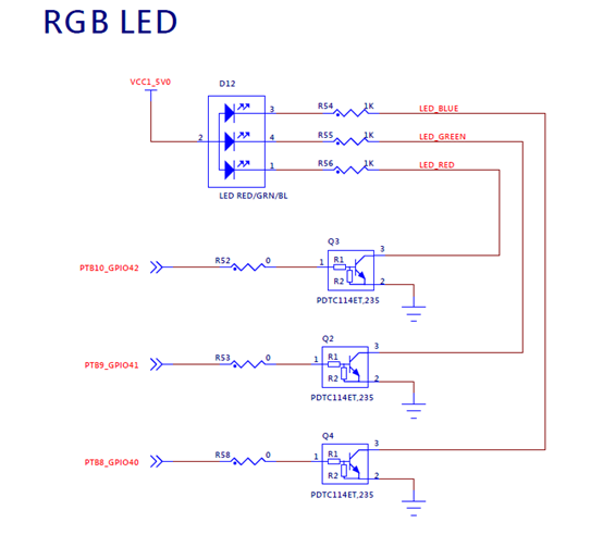 首先根據原理圖配置RGB三色LED