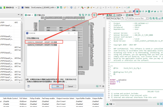 需要修改MCU封裝配置,工程默認打開的封裝是174引腳的,因開發板上晶片為100引腳封裝,故這裡需要進行更改.