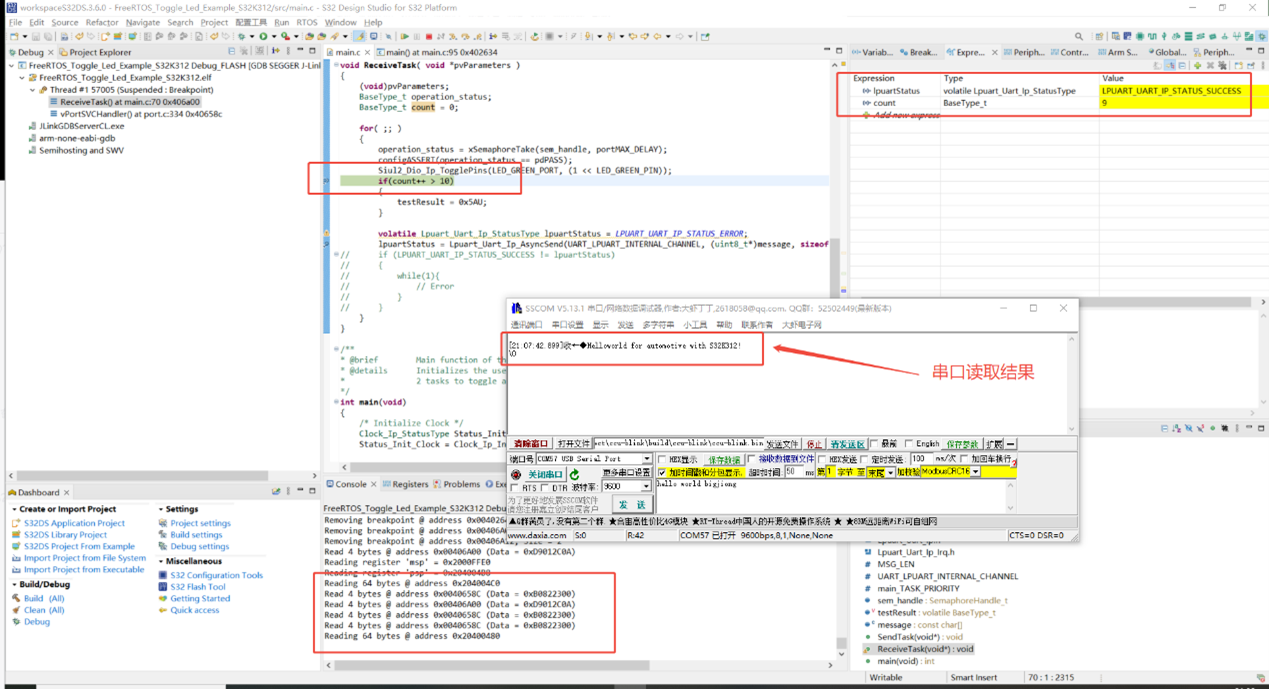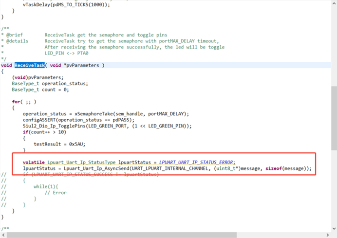 最後在ReceiveTask函數中添加周期性串口列印代碼