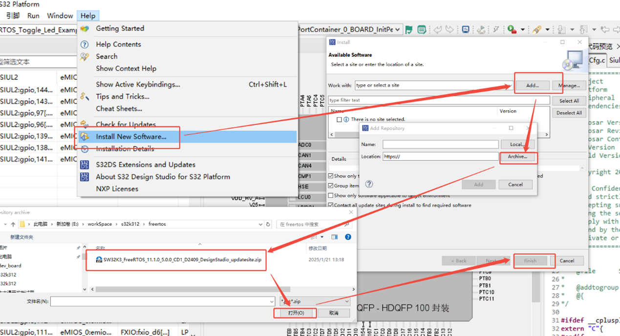 根據原理圖,配置引腳及軟體組件