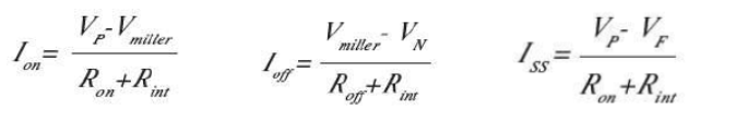 一般閘極驅動線路如圖6(a)所示,閘極導通與關斷瞬間之正與負電流以及穩態電流如下。