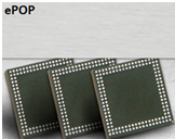 ePOP(eMMC + Package on Package)則是另一種封裝方式的eMCP.目前eMCP的外觀尺寸為11.5 x13(mm),而ePOP的外觀尺寸為10 x10(mm),最主要的應用在穿戴式的智慧裝置,如智慧手錶/智慧眼睛,ePOP與上述模組最大的不同點在於它是直接裝載在SoC的上方,也就是俗稱背娃娃的方式,這樣的記憶體模組最適合應用在空間極度有限的智慧裝置產品.