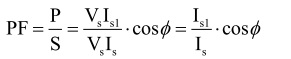 PF之定義為平均功率 (Average Power) P對視在功率 (Apparent Power) S的比值:
