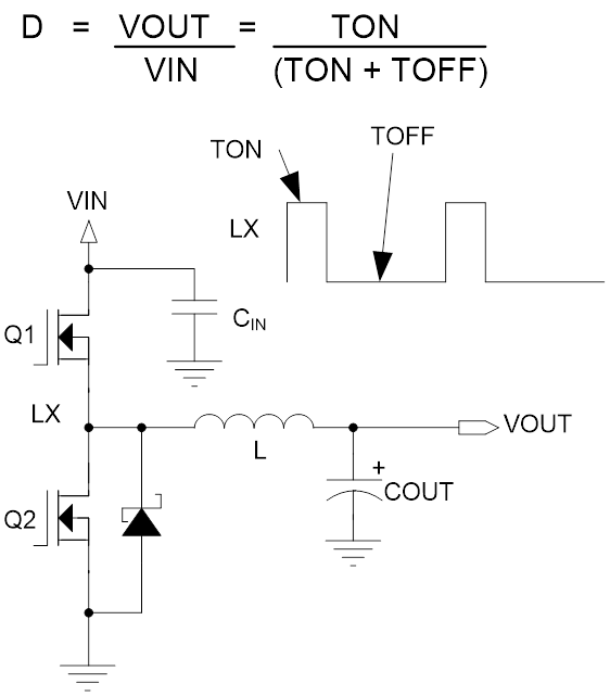 As VIN increases, Duty Cycle decreases, to maintain constant VOUT