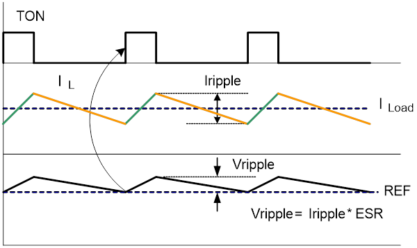 - Up-ripple current = (VIN – VOUT) × TON / L