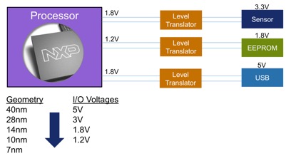 隨著CPU 製程的演進, 技術走向更省電, 高速及效率的時代, 製程由傳統40奈米5V I/O 演進至10奈米1.2V I/O 製程, 未來7 奈米有可能低至0.8V I/O.