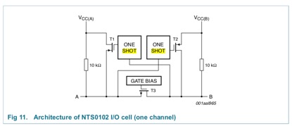 因此, NXP 重新設計電平轉換器件,首先推出4bit 元件NTS0304, 而後再推出2 bit 元件NTS0302.