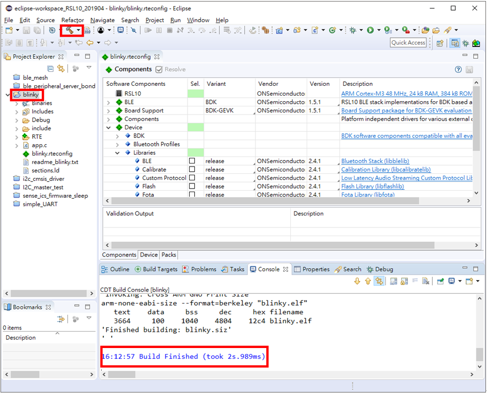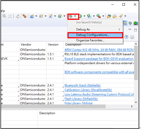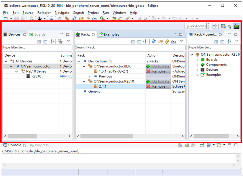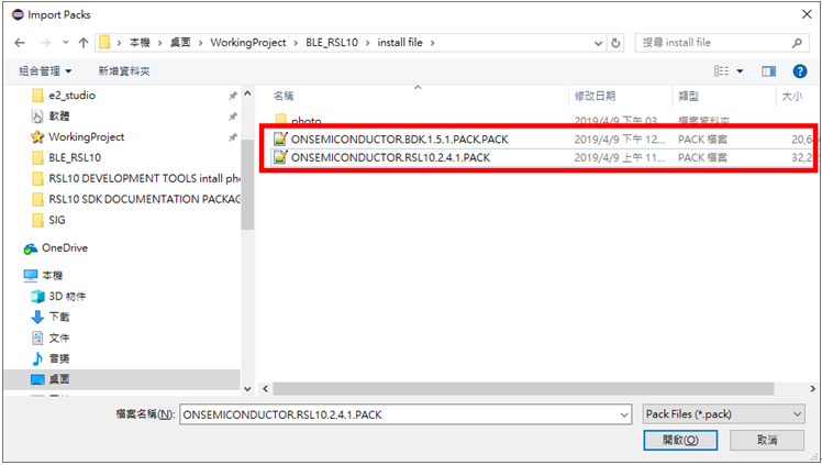 - 下載 BDK.1.5.1.PACK 及 ONSEMICONDUCTOR.RSL10.2.4.1