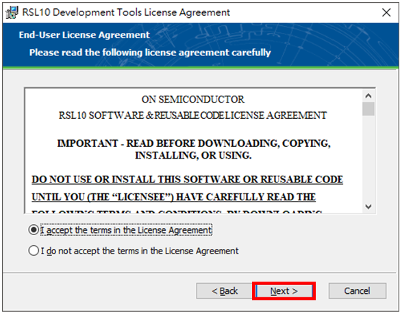 - 安裝前如果之前有安裝舊版 RSL10 SDK 請先移除並將 RSL10 資料夾刪除。