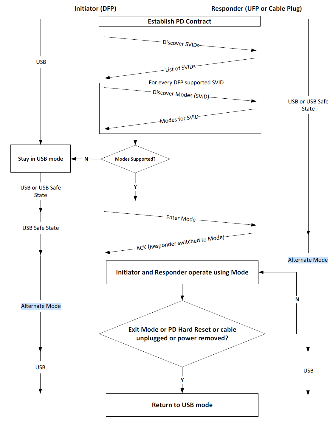 Alternate mode 必須由資料角色中的Host(DFP)來發起