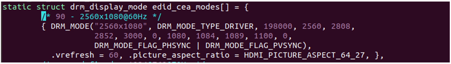 1. 將所需的解析度加入edid_cea_modes array中 :