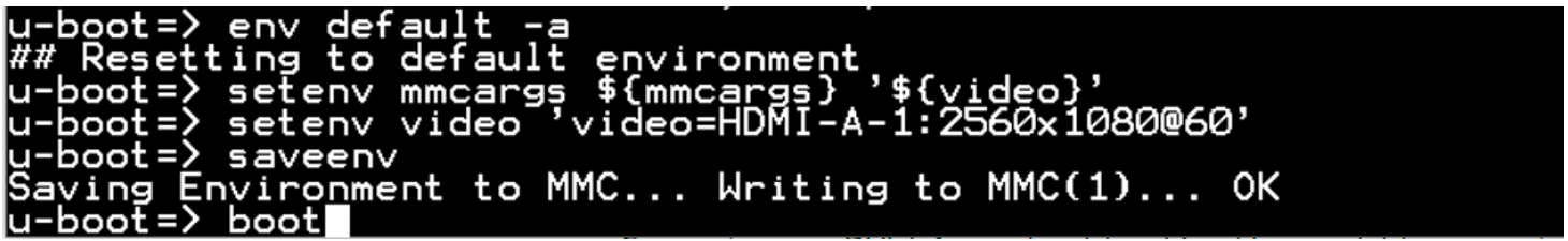4. 開機進入u-boot 模式並指定 mmcargs 參數內的video值