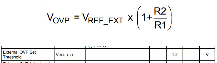 2. 可以依據外部分壓電阻調整過電壓保護點,其設定有如一般DCDC FB 設定,OVPFB其reference voltage為1.2V
