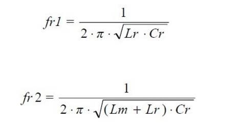 而LLC有兩個諧振頻率,Cr, Lr 決定諧振頻率fr1; 而Lm, Lr, Cr決定諧振頻率fr2。系統的負載變化時會造成系統工作頻率的變化,當負載增加時, MOSFET開關頻率減小, 當負載減小時,開關頻率增大。