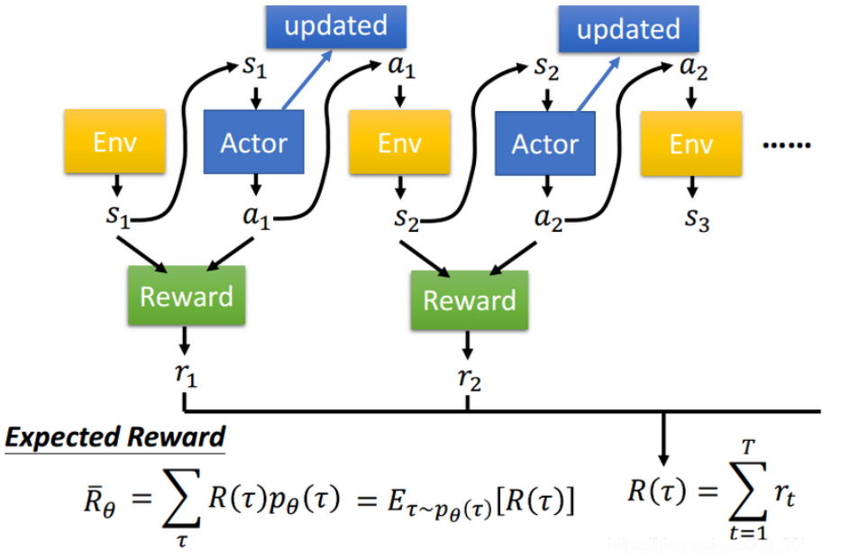 我們就可以根據採樣得到的回報值計算出數學期望,從而得到目標函數,然後用來更新我們的參數 θ。