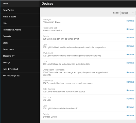 1. 點選”Smart Home” à “Device”,此時會看到許多裝置顯示在列表中。在此範例這些裝置是屬於虛擬裝置,透過Lambda規則中建立。( 45)