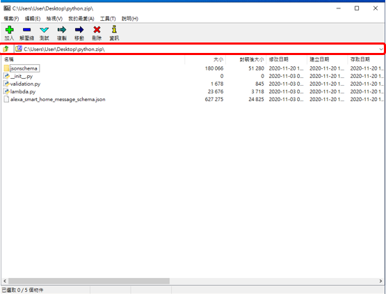 1. 複製alexa-smarthome-master.zip\alexa-smarthome-master\validation_schemas\ alexa_smart_home_message_schema.json至上一步下載檔案之/sample_lambda/python路徑中。
