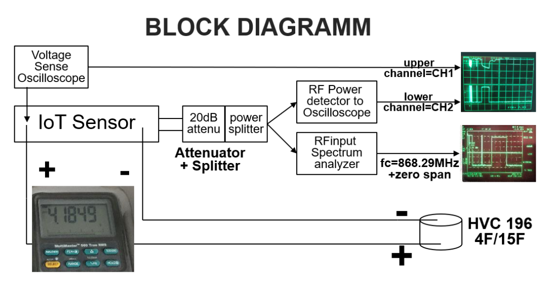 在 4.1V 端測量的電流為 80mA – 125mA。 IoT 傳感器包含一個降壓變換器,可轉換為最佳的收發器電壓。 OOK、FSK 和 LORA™ 脈衝已發射;然後,電路等待接收“確認”信號。