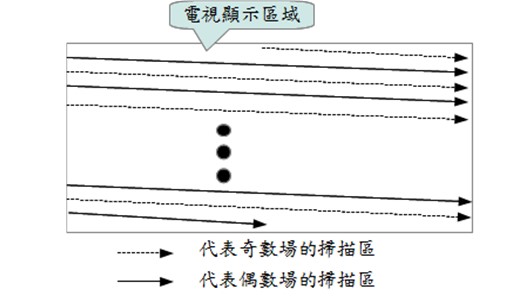 显示方式分为逐行扫描(Progreesive scan)和隔行扫描或者交错扫描(Interlaced scan). Interlaced 扫描技术是从早期CRT电视时代所遗留下来的显示方式,因为CRT反应速度无法使用逐行扫描, 那时候的技术就是将整张画面分为奇数场(Odd field)和偶数场(Even field), 如下图所示