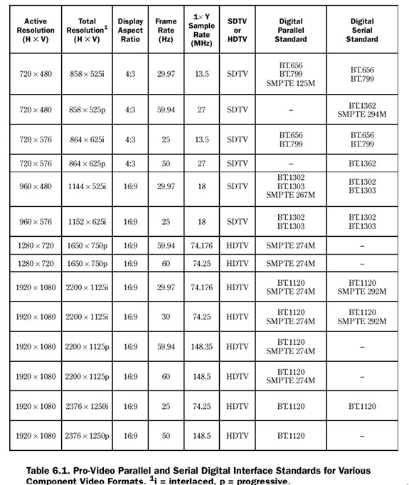 - SDTV的interlace format最快是18MHz,resolution是960x576/2。