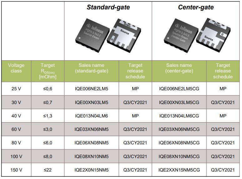 新封裝概念將源極(Source)與導熱片相接 ,而透過導熱片連接至PCB。與現有技術相比,此Source Down OptiMOS可使RDS(on) 降低。相較於傳統的PQFN封裝,接面與外殼間的熱阻 (RthJC) 亦獲得大幅改善。Source Down OptiMOS可承受較的高連續電流。此外,經過最佳化的配置可能性和Layouty走線佈置更有效的PCB利用,可實現更高的設計靈活性和最高效能使縮小產品體積。