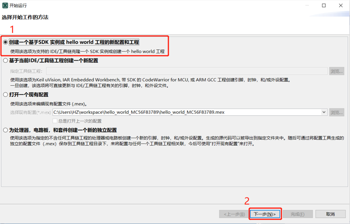 Step1:选择工程创建方法,基于 SDK 创建一个 hello world 工程。