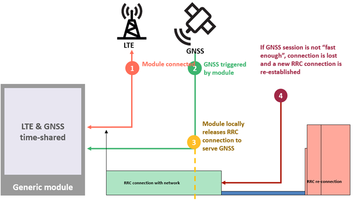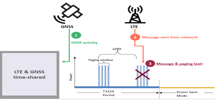 具有時間共用 LTE 和 GNSS 的模組可能會因為運行 GNSS 而失去LTE資料傳遞