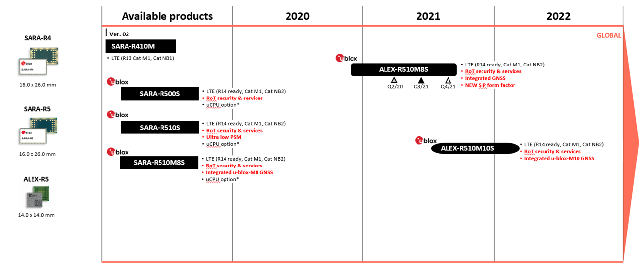 由上圖針對 UBLOX R5系列產品的演進路線圖可看出,新款 ALEX-R5系列由以往帶鐵殼封裝的 LGA 模塊演進成 SIP封裝。