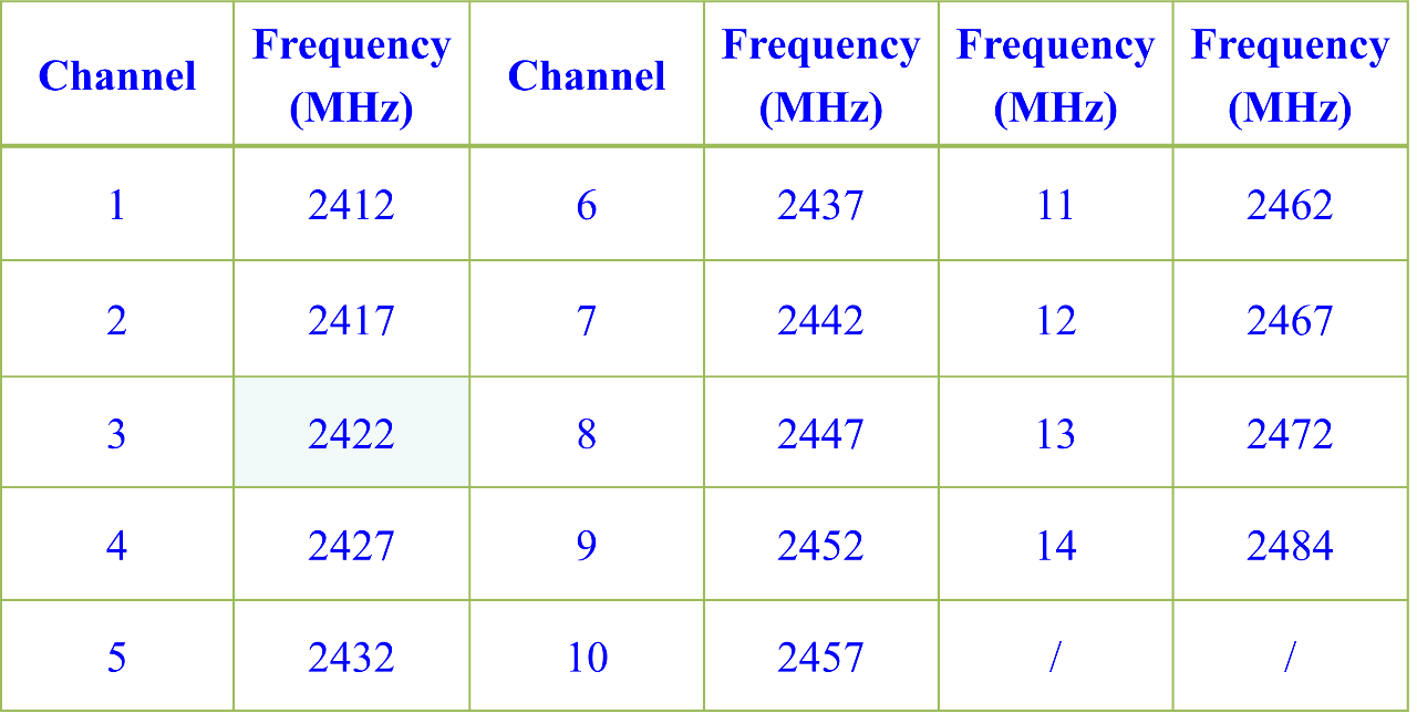 ØThe频率范围及e.i.r.p.限制不得超过。