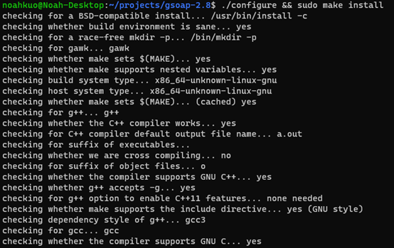 在官方網頁的說明文件中,建議使用gSOAP 2.8.62以上的版本來開發ONVIF專案,本文所使用的開發環境為Ubuntu 18.04,由apt取得的gSOAP版本僅為2.8.60版,因此需手動下載最新版gSOAP 2.8.117自行編譯,必須先安裝bison, flex, gcc與automake等套件。