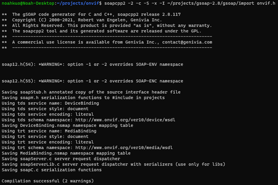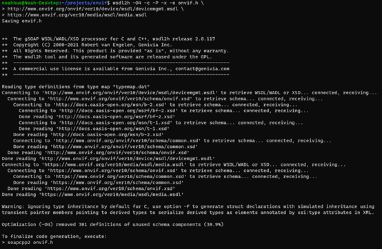gSOAP提供了兩個工具來協助生成ONVIF框架程式碼,分別為wsdl2h與soapcpp2
