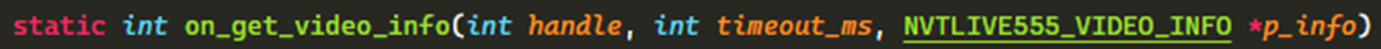 此函式需在VideoEncode Module運作後才能執行,目的是取得目前的影像編碼格式與VPS、SPS與PPS等資訊並填入VIDEO_INFO的變數中,在RTSP伺服器端回應用戶端的DESCRIBE請求時,會放在SDP資料中傳回,讓用戶得知要影像的尺寸與使用何種解碼器