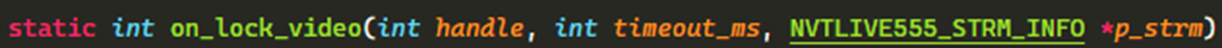 這是實際video frame的內容,需將資料從video encode module中取出,存放在暫存記憶體後將資料的位址與大小填入NVTLIVE555_STRM_INFO的格式,live555會將之包裝成RTP格式的封包,傳送給用戶端。