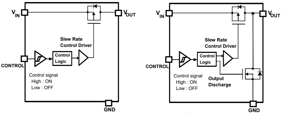 東芝為該系列產品準備了三種IC:在高電平有效時開啟自動放電的TCK127BG;在高電平有效時不開啟自動放電的TCK126BG;在低電平有效時開啟自動放電的TCK128BG。產品開發者和設計者可自由選擇最適合其設計要求的負載開關IC。