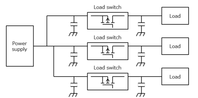 負載開關是串聯在電源和電源之間的半導體開關, 由於希望傳輸元件的電壓降和功耗最小化,因此低導通電阻 MOSFET 為主要傳輸元件。可靠運行和斷開所需的電源順序設置於一個複雜的系統,以降低功耗,並且包含各種保護功能以及指示、外部故障狀態。