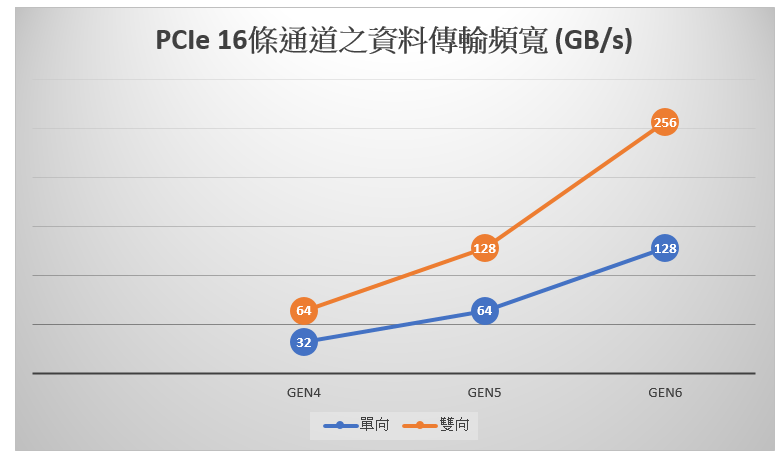 單向16通道的頻寬可達 = 16 Gb/s x 16 = 256 Gb/s = 32 GB/s