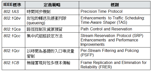 另外,802.1CB 標準所定義的「封包的複製及冗餘複本的消除」(Frame Replication and Elimination for Reliability,FRER),使得特定的、特別關鍵的串流,可在網路出現小幅度的意外狀況時 (例如少數鏈路或交換器發生故障),獲得多一層的保障;此標準也被視為是增加TSN應用可靠度而重要的功能,可預期市場上將會有越來越多廠牌的TSN交換器有支援此標準。
