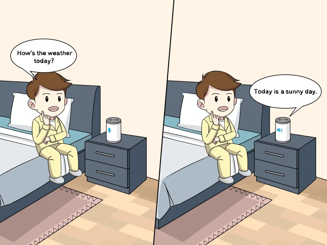 他想了解睡眠質量以及今天的天氣情況。於是床頭的筒燈向小凌匯報了他昨晚的睡眠情況,臥室的窗簾告訴他,今天天氣晴朗溫暖,不用穿得太厚。