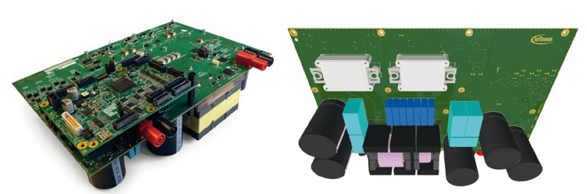 圖9:LLC原型頂層(左)和底層(右),所示為CoolMOS™ CFD7A Easy1B壓接電源模塊。