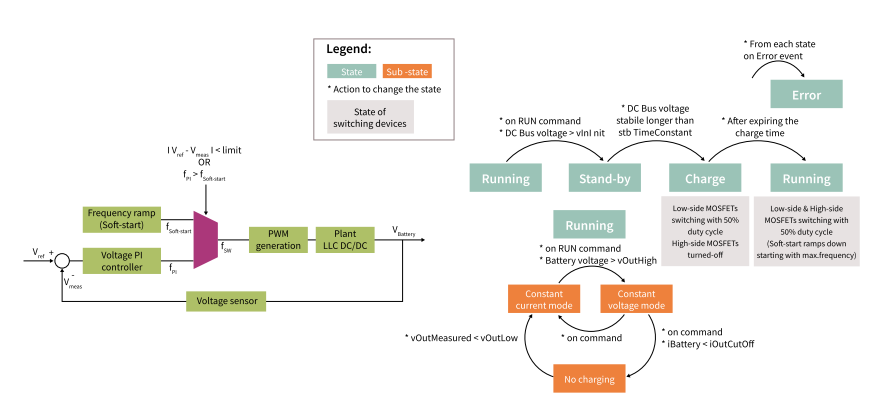 圖8:柵極驅動器自舉和PI控制在其自己的狀態機(左)中進行,而其他應用則在單獨的狀態機(右)中處理。