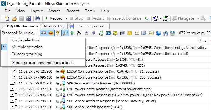 Ellisys的介面算是有點凌亂,又是文字,又是圖表的