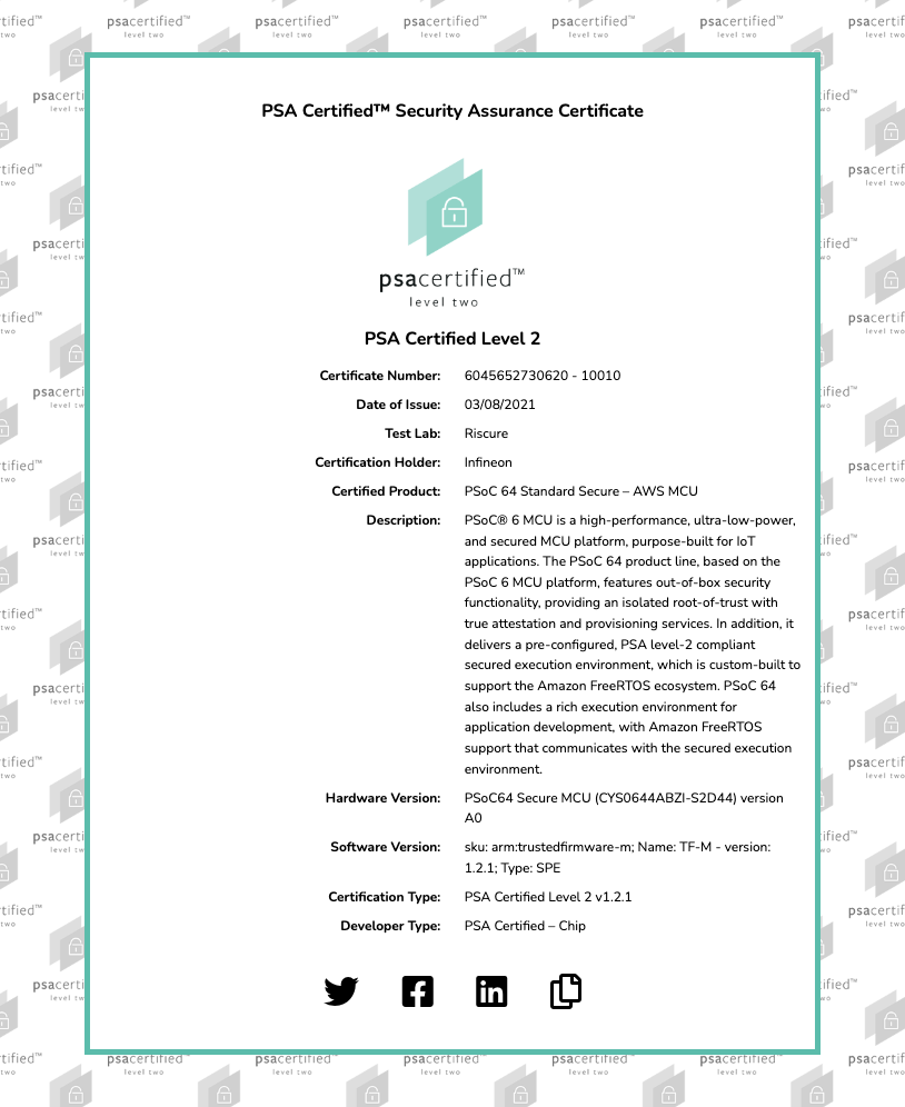 – AW S MCU — PSA Level2認證書