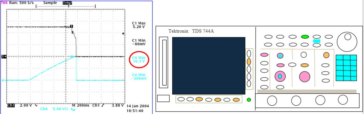 CH1的量測值 Max & Min 填在 Transient 表格中 .